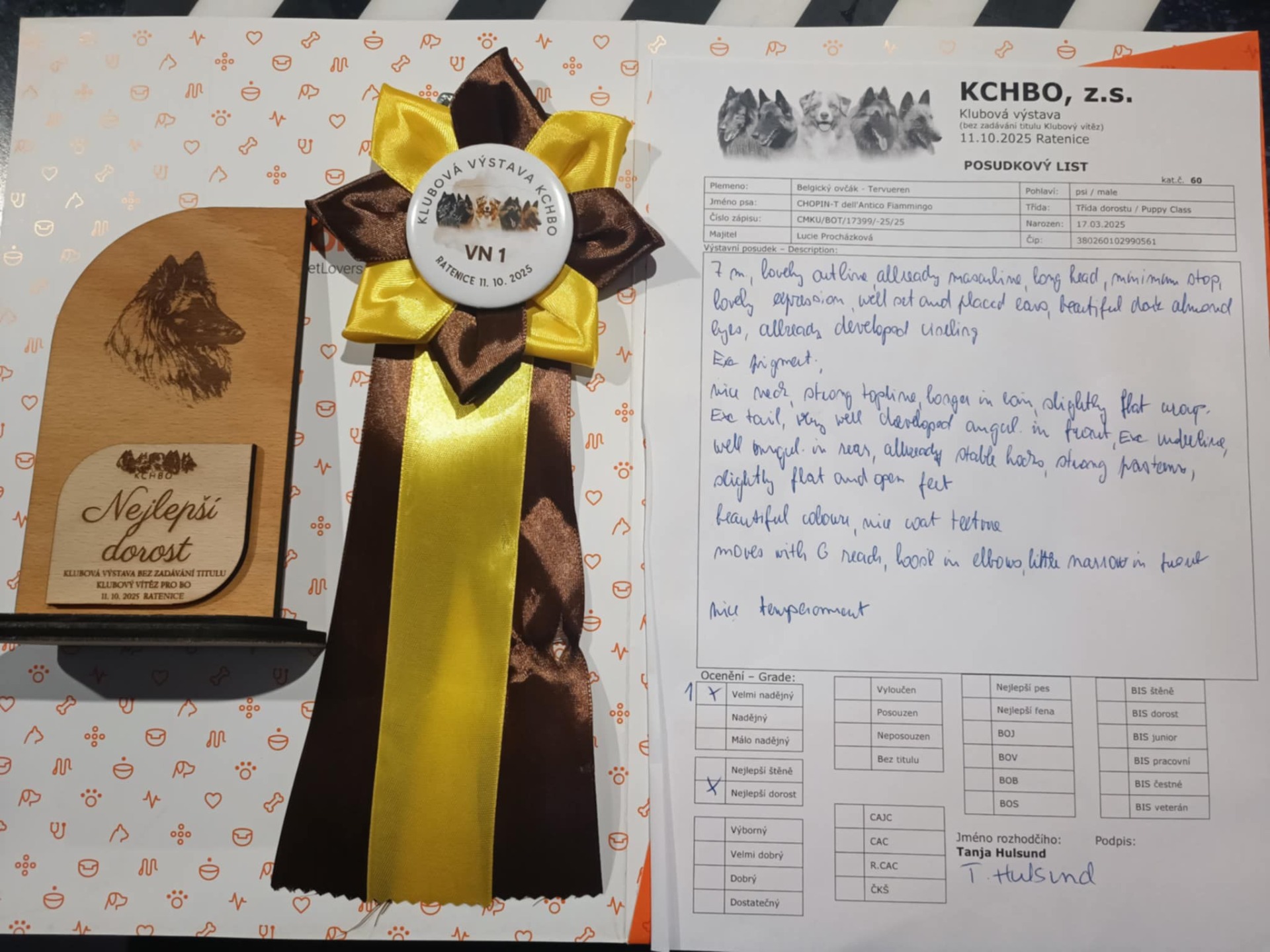 Il piccolo Chopin sta crescendo molto promettente e con la sua proprietaria Lucie si è approcciato per la prima volta ad una esposizione regionale di bellezza in repubblica Ceca. Siamo contenti del risultato e del comportamento del cucciolo e ci auguriamo davvero ci sia un futuro radioso per lui e per la nostra cara amica Lucie!!!